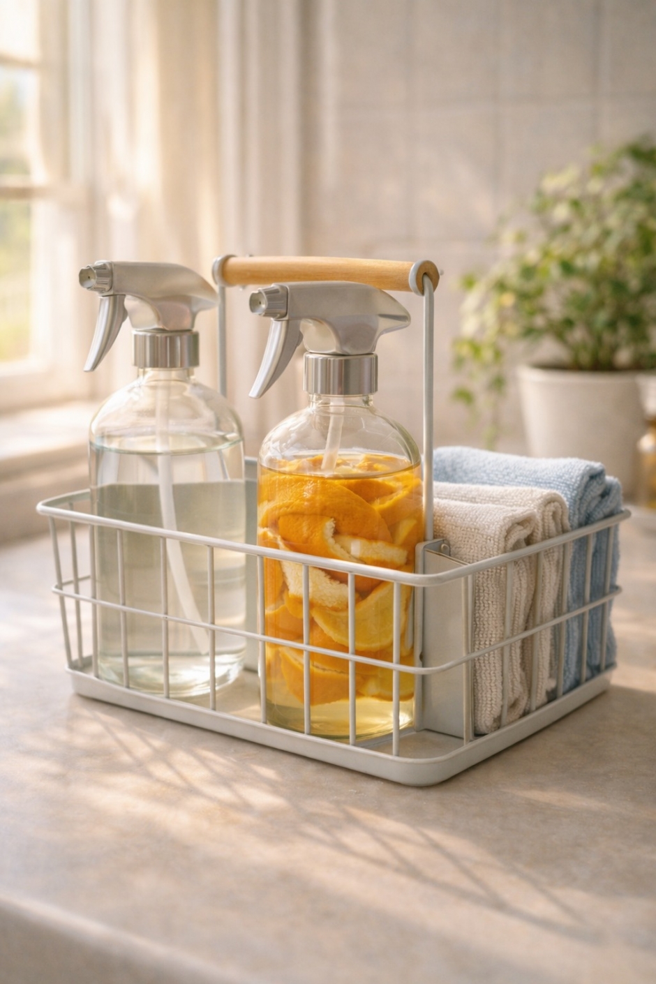 Citrus oils cut grease naturally while softening vinegar’s sharp edge.