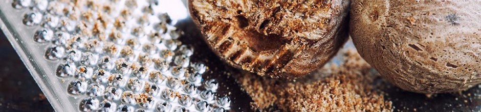 The spice nutmeg has a distinctive pungent fragrance and a warm slightly sweet taste, it is used to flavour many kinds of baked goods, confections, puddings, potatoes, meats, sausages, sauces, vegetables, and such beverages as eggnog.