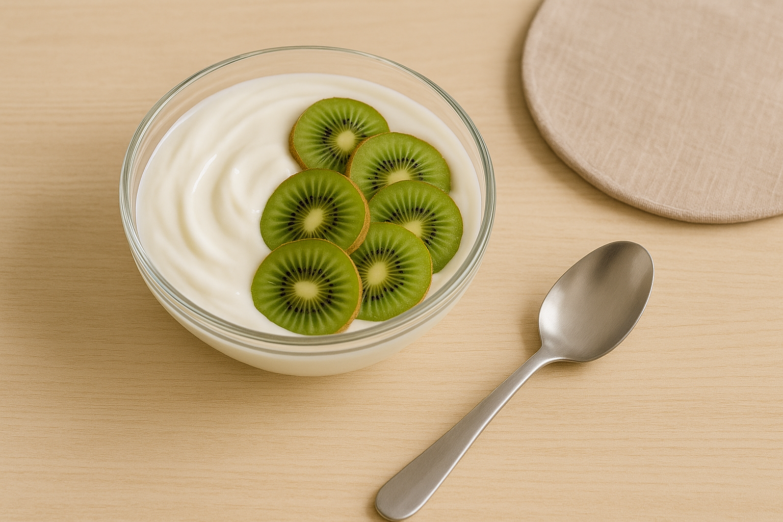 Ingredient 1: Kiwi + plain yogurt, evening snack (1–2 kiwis).