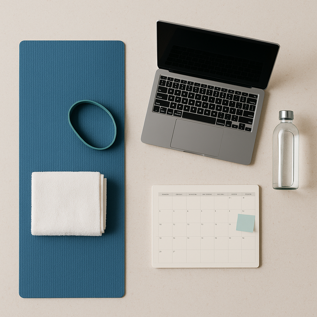A fixed “PT corner”: chair + mat + towel in a basket. Less decision friction → more sessions. Tele-rehab adherence improves when setup is stable.