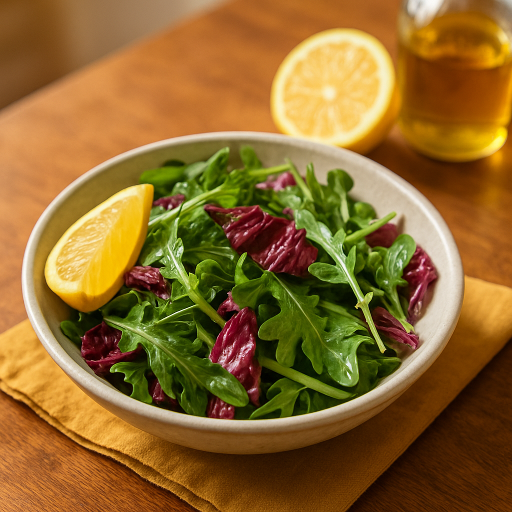 Ingredient 1: Bitter Greens Mini-Starter Pairs with: A drizzle of olive oil and lemon; goes before dinner. Prep tip: Wash a mix (arugula, radicchio) on Sunday; store in a clear container at eye level. Frequency: Most evenings, 3-5 forkfuls.